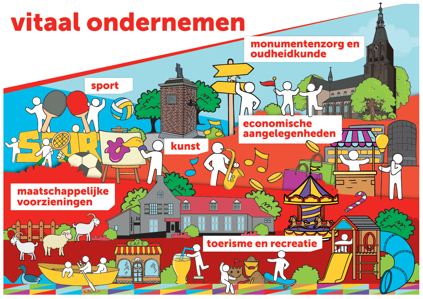 De afbeelding hierboven geeft een indicatie van de vaste werkzaamheden die we uitvoeren binnen het programma Vitaal Ondernemen.